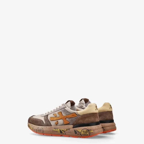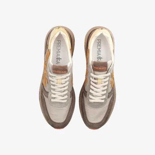 A blend of premium materials and fine leathers, this shoe comes in brown and grey tones for a relaxed, casual look. The signature silhouette is elevated by the iconic Premiata logo.